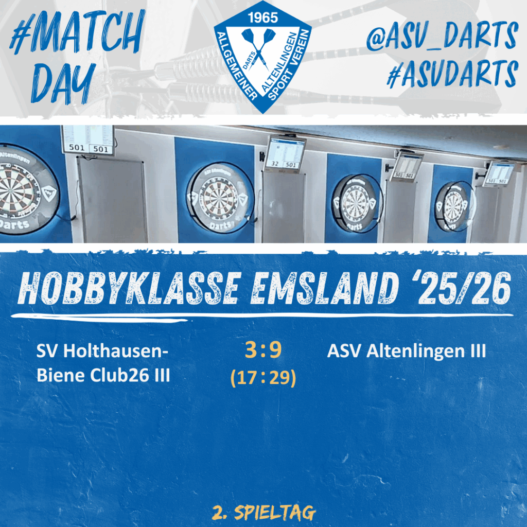 Unsere ASV Altenlingen III konnte gestern Abend gegen den SV Holthausen-Biene Club 26 III einen 3:9-Auswärtssieg einfahren! 🙌💙