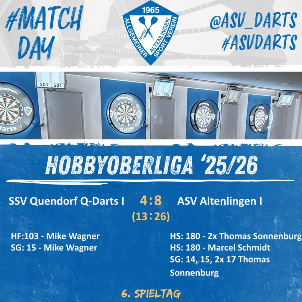 Unsere ASV Altenlingen I holt sich auswärts bei SSV Quendorf Q-Darts I einen starken 8:4-Sieg (26:13 Legs). Genau die Antwort, die wir geben wollten! 🔥