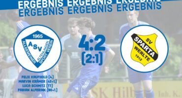 Read more +06 Oktober 2025 By Sascha Hüsken in Fussball, Fussball HerrenAm Donnerstagabend feiert die Erste einen 4:2-Heimsieg gegen Aufsteiger Sparta Werlte. Trotz doppelter Führung lässt der ASV den Gegner gleich zweimal wieder ausgleichen, bevor Luca Schmitz und Fabian Alferink in der Schlussviertelstunde für die Entscheidung zugunsten von Blau-Weiß sorgen. Insgesamt ein eher durchschnittlicher Auftritt, bei dem am Ende aber nur die drei Punkte und die