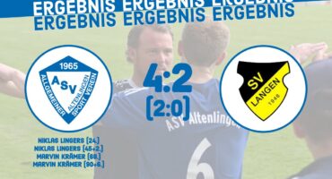 Read more +22 September 2025 By ASV Altenlingen in Fussball, Fussball HerrenUnsere Erste ringt den SV Langen mit 4:2 nieder und erzielt somit auch im dritten Bezirksliga-Heimspiel vier eigene Treffer. Auch wenn Niklas Lingers und Marvin Krämer beide per Doppelpack treffen, ist das Resultat das Ergebnis einer insgesamt starken Teamleistung. Der ASV betreibt dabei Eigenwerbung für das Derby am Donnerstag zuhause gegen Union Lohne und freut