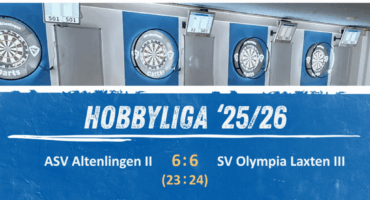 Read more +14 November 2025 By Timo Konermann in DartsWas für ein Fight! 🔥Unsere zweite Mannschaft hat in der Hobbyliga ’25/’26 ein echtes Dauerduell hingelegt – am Ende steht ein gerechtes Unentschieden gegen starke Gäste aus Laxten. Ein Spiel, das bis zum letzten Pfeil Spannung geliefert hat! 💙🤍 ASV Altenlingen II 6 : 6 SV Olympia Laxten III(Legs: 23 : 24) Von Anfang an