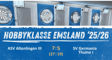 Read more +03 November 2025 By Timo Konermann in DartsWas. Für. Ein. Abend! 💥Unsere dritte Mannschaft hat in der Hobbyklasse Emsland ’25/26 ein echtes Krimi-Match hingelegt – mit dem besseren Ende für den ASV Altenlingen III! 🔵⚪ ASV Altenlingen III 7 : 5 SV Germania Thuine I(Legs: 27 : 19) Von Anfang an war klar: Das wird kein Spaziergang. Nach einem holprigen Start kämpfte