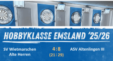 Read more +14 November 2025 By Timo Konermann in DartsWas für ein Auswärtsspiel! 💥Unsere dritte Mannschaft holt sich in der Hobbyklasse Emsland ’25/’26 einen starken und absolut verdienten Sieg in Wietmarschen. Konzentriert, nervenstark und über weite Strecken klar überlegen – genau so sieht ein souveräner Auftritt aus! 💙🤍 SV Wietmarschen Alte Herren 4 : 8 ASV Altenlingen III(Legs: 21 : 29) Von Anfang an