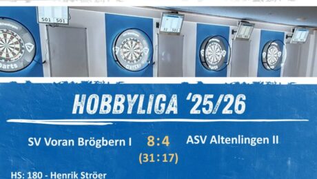 Auswärts in Brögbern war mehr drin, am Ende steht aber eine 8:4-Niederlage (31:17 Legs) gegen SV Voran Brögbern I.