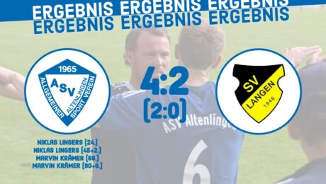 Unsere Erste ringt den SV Langen mit 4:2 nieder und erzielt somit auch im dritten Bezirksliga-Heimspiel vier eigene Treffer. Auch wenn Niklas Lingers und Marvin Krämer beide per Doppelpack treffen, ist das Resultat das Ergebnis einer insgesamt starken Teamleistung. Der ASV betreibt dabei Eigenwerbung für das Derby am Donnerstag zuhause gegen Union Lohne und freut sich nun auf ein heißes – ja, wir dürfen es so nennen – Spitzenspiel gegen die Eisernen. Mehr dazu heute Abend! Aber noch wichtiger: Drei Punkte für unseren erkrankten Verteidiger Marcel Hofschröer, der hoffentlich sehr bald wieder zur Mannschaft stoßen kann!