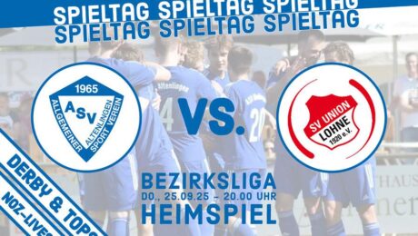 Donnerstag ist Crunchtime: Der ASV und ganz besonders unsere Erste brennen auf das „kleine“ Derby und Flutlicht-Heimspiel gegen Aufstiegsfavorit Union Lohne. Anstoß ist um 20 Uhr.