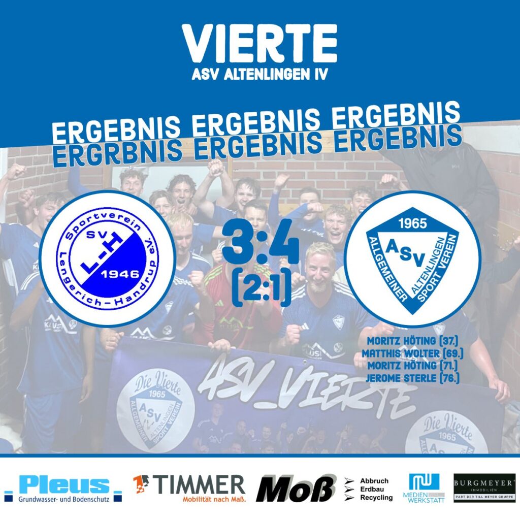 Einen spektakulären 4:3-Auswärtssieg gegen Lengerich-Handrup IV fährt unsere Vierte ein. Danach sieht es aber lange gar nicht aus: Schon nach acht Minuten liegt die Mannschaft von Trainer Schuster mit 0:2 hinten, zeigt danach aber große Moral und biegt das Ergebnis in den vierten Saisonsieg um.