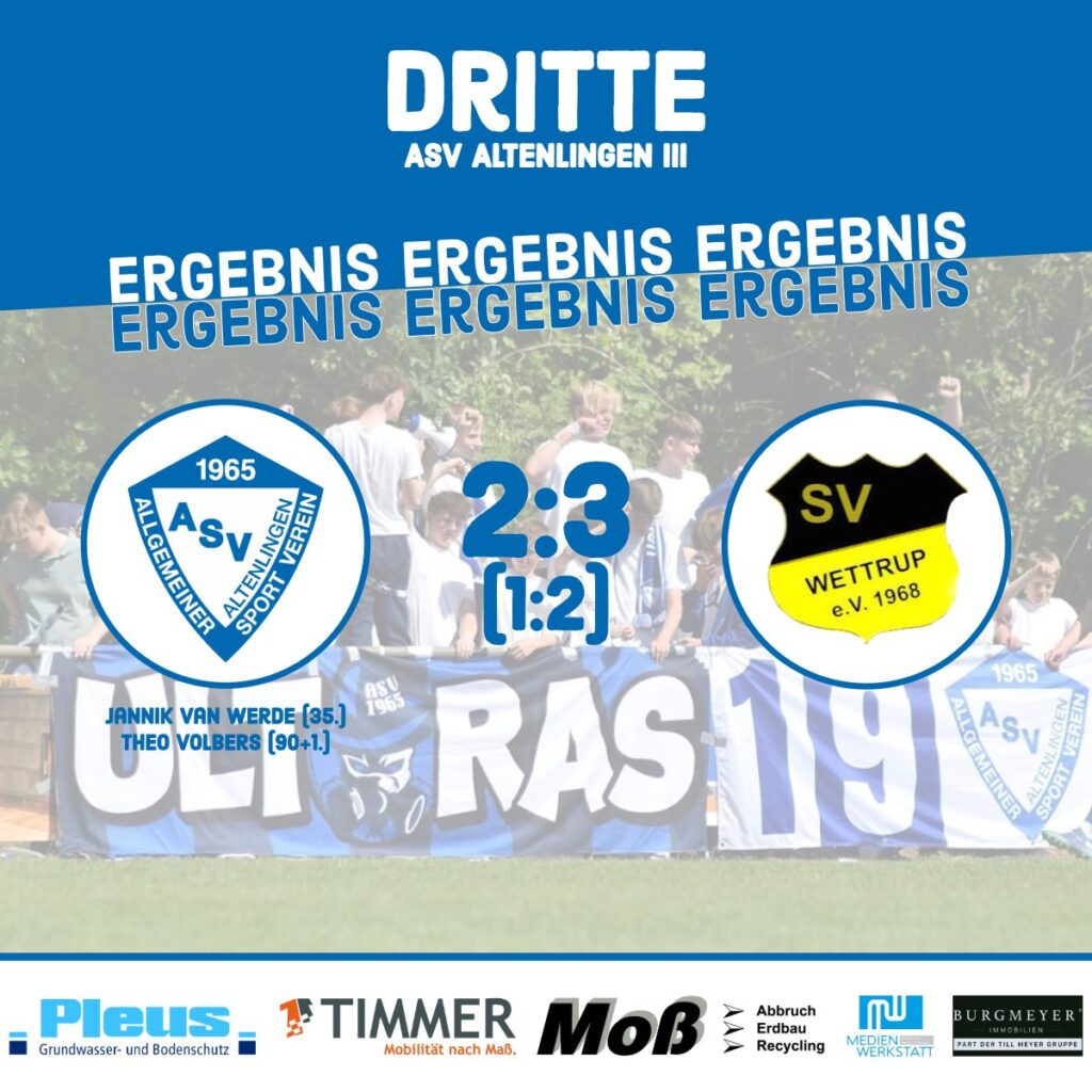 Nicht so gut läuft es für unsere Reserveteams: Die Zweite kassiert beim 1:2 in Dohren die nächste Auswärtsniederlage und die Dritte verliert nicht nur 2:3 gegen den SV Wettrup, sondern schon zum zweiten Mal hintereinander.