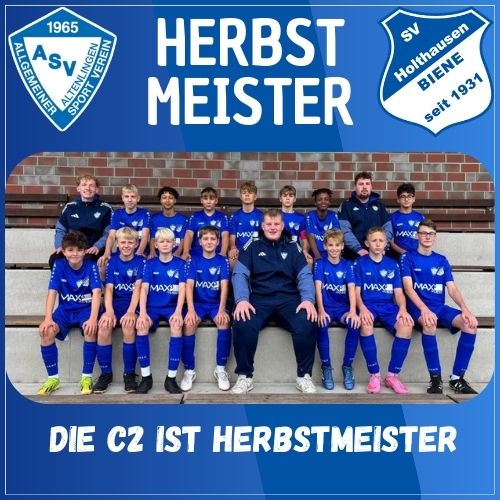 Beim vorletzten Spiel vor den Herbstferien konnte unsere C2 sich den Staffelsieg in der Kreisliga C sichern. Bis zu diesem Spiel punktgleich mit der Mannschaften aus Laxten reichte dem Team ein Sieg um sich den ersten Platz zu sichern, da die Tordifferenz eindeutig für die Jungs der JSG ASV Altenlingen/ SV Holthausen-Biene sprach. Im November bestätigte die Mannschaft mit einem weiteren Sieg gegen die JSG Brögbern/Bawinkel/Cl.-Bramhar II ihren ersten Platz und geht nun als ungeschlagener Herbstmeister in die Hallensaison.