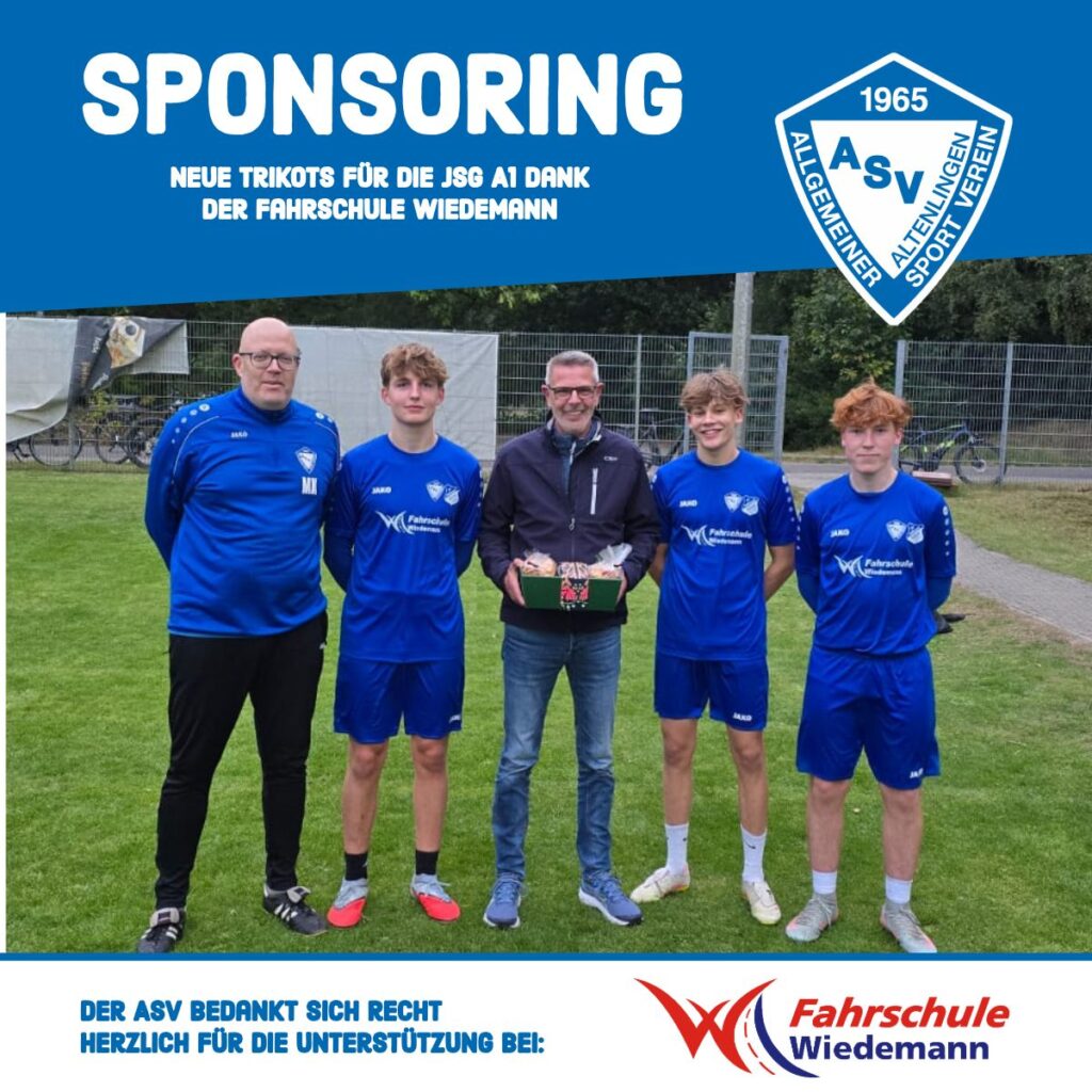 Schon in der letzten Saison unterstützte Holger Wiedemann von der Fahrschule Wiedemann unsere B1 mit einem neuen Trikotsatz. In dieser Saison sponsorte er erneut einen Trikotsatz diesmal für die A1 der JSG ASV Altenlingen/SV Holthausen-Biene.